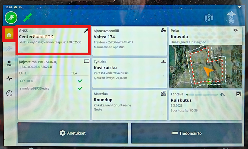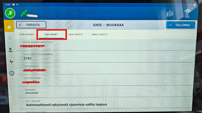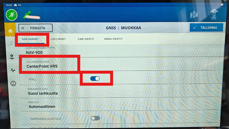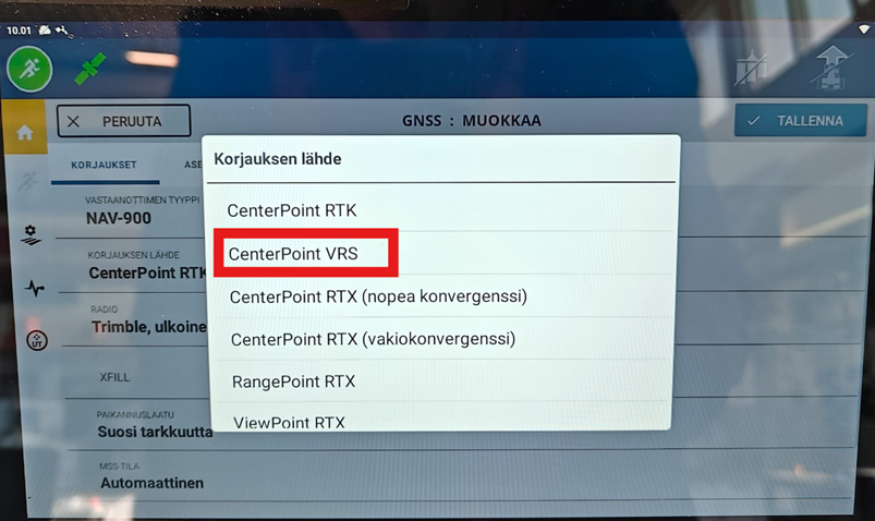 Valitaan korjauksen lähteeksi CenterPoint VRS ja kytketään xFILL päälle