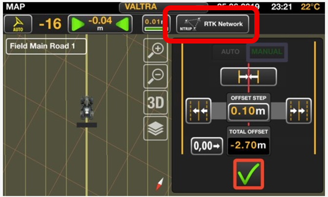 Navigoi RTK asetuksiin, painamalla näytön ylälaidassa olevaa RTK Network -kuvaketta