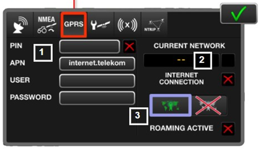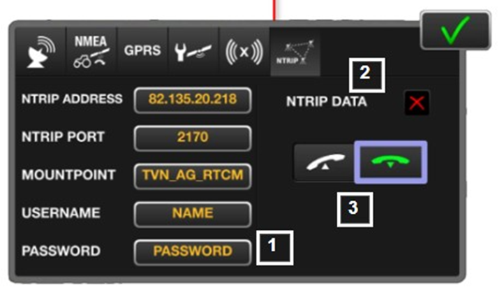 Karera tunnukset syötetään viimeiselle välilehdelle NTRIP