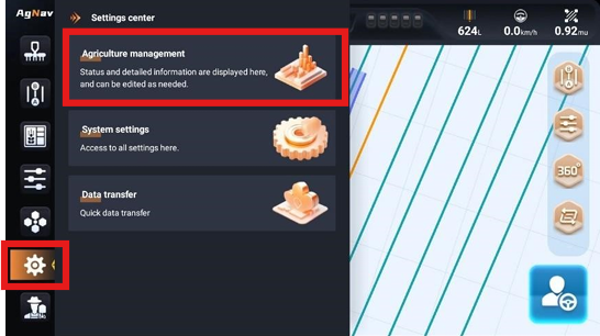 Navigoi näytölläsi Asetuskeskukseen ja siirry Maatalouden hallintaan:
