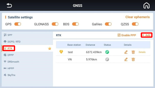Valitse RTK asetukset ja lisää uusi RTK profiili: