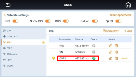 Määritä profiiliksi CORS (NTRIP) -protokolla ja syötä Karera asetukset: