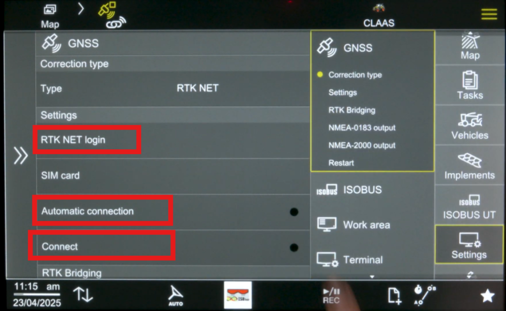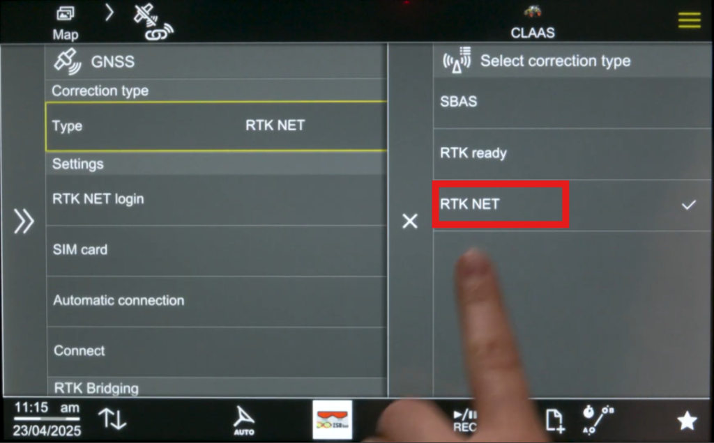 Valitse Asetukset / Settings ja paina näytöltä GNSS korjauksen tyyppiä, valitaksesi oikean tyypin: