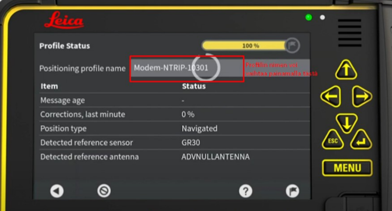 Navigoi näytölläsi päävalikon kautta kohtaan Paikannus ja valitse käyttöösi GNSS Profiili: