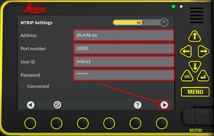 Karera korjaussignaalin asetukset Leica MC1 3D koneohjausjärjestelmään.