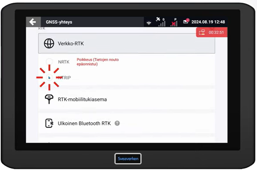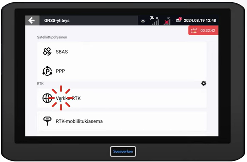 Valitse Verkko RTK: